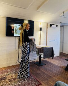 Elisabeth Sutherland, worked through long-term, research-driven practice using textiles, archives, and institutional critique to examine colonial histories and their contemporary economic and cultural consequences. Her presentation focused on the Dutch textile company Vlisco, originally founded to industrialize Indonesian batik production. When the fabrics failed in Southeast Asia, they were redirected to West Africa and marketed as “African prints,” a strategy that proved commercially successful while undermining local textile traditions and redefining cultural identity through mass-produced goods. Elisabeth highlighted how these fabrics, despite lacking authentic African symbolic origins, are now widely perceived as traditional, while Vlisco continues to tightly control access to its archives and resists engagement with decolonial critique. Elisabeth was brought in contact with representatives of local partners in Amsterdam like Black Archives, Sites of Memory, World Museum and Guave a batik designers label as an ongoing project focused on offering small collections of fairly produced items for the conscious consumer who appreciates craftsmanship and artisanship.